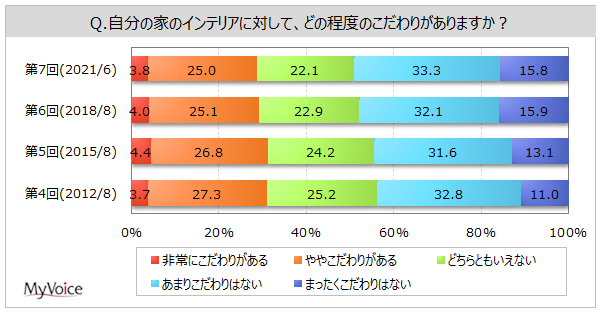 | マイボイスコム株式会社(東京都千代田区、代表取締役社長:高井和久)は、7回目となる『インテリア』に関するインターネット調査を2021年6月1日〜5日に実施し、10,240件の回答を集めました。調査結果をお知らせします。 【調査結果】 https://myel.myvoice.jp/products/detail.php?product_id=27503 |